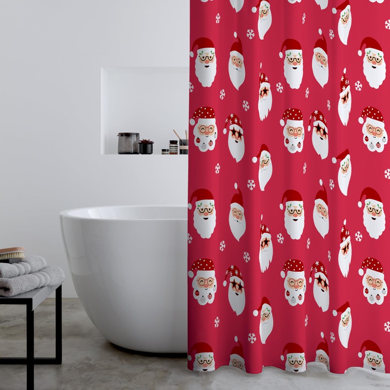 Catherine Lansfield Christmas Santa Spec-Tacular Shower Curtain, 180x180 cm, Red