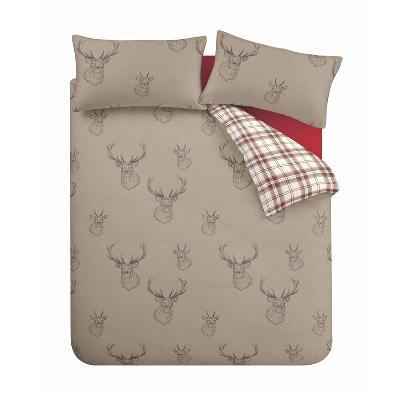 Catherine Lansfield Stag Check Reversible Single Duvet Cover Set with Pillowcase Natural