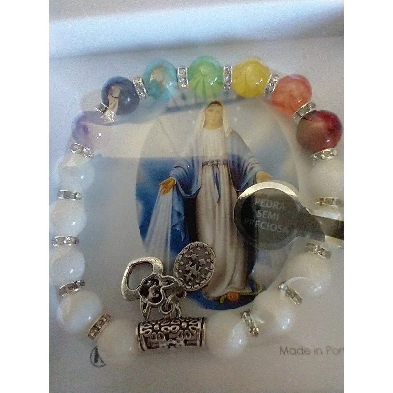 Catholic Multicolor Linked Bracelet with Semi Precious Stones Miraculous Medal