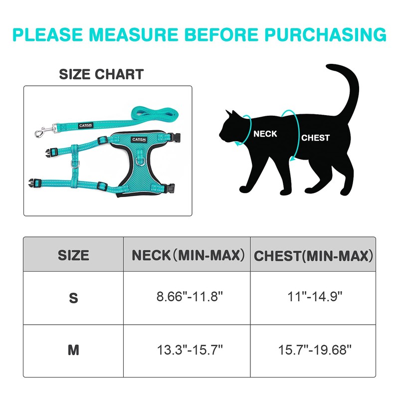 - No slipping out: CATISM cat harness with lead set has 2 side buckles for a secure closure so that the cat cannot slip out. The choke resistant design protects your cat's neck from the pull and strain of a collar. The fit means this leash won't pull as much on the neck as traditional harnesses should your cat jump off.