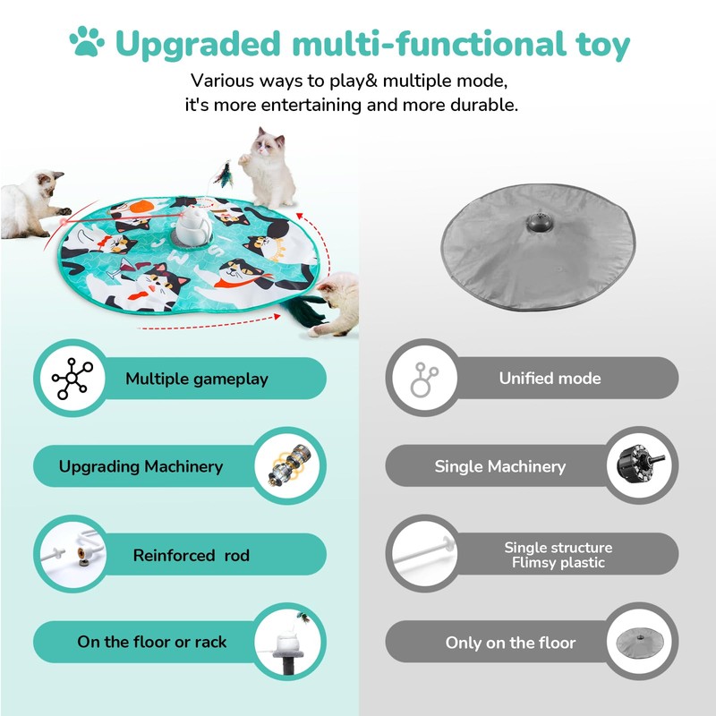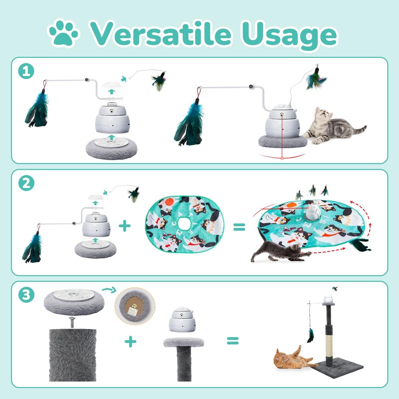 - ✅【Multifunctional Indoor Exercise Toys】2024 new 4in1 smart automatic cat toy include hide and seek; feather spring; light pointer multiple game modes, train cat's brain while encouraging them to exercise. It not only maintain a healthy weight, but also help them get rid of loneliness to keep a happy mood. Believe your little cutie will love it!