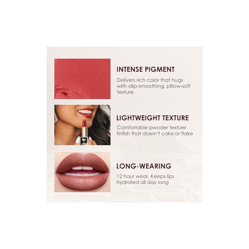 - 【RELIEF SCULPTURE CRAFTS】 The outer case of this lipstick is inspired by Chinese Traditional Paintings, inheriting the eastern culture. And the lipstick paste is carved by miniature and relief sculpture crafts and to promote the aesthetics of the Chinese intangible cultural heritage to the world.