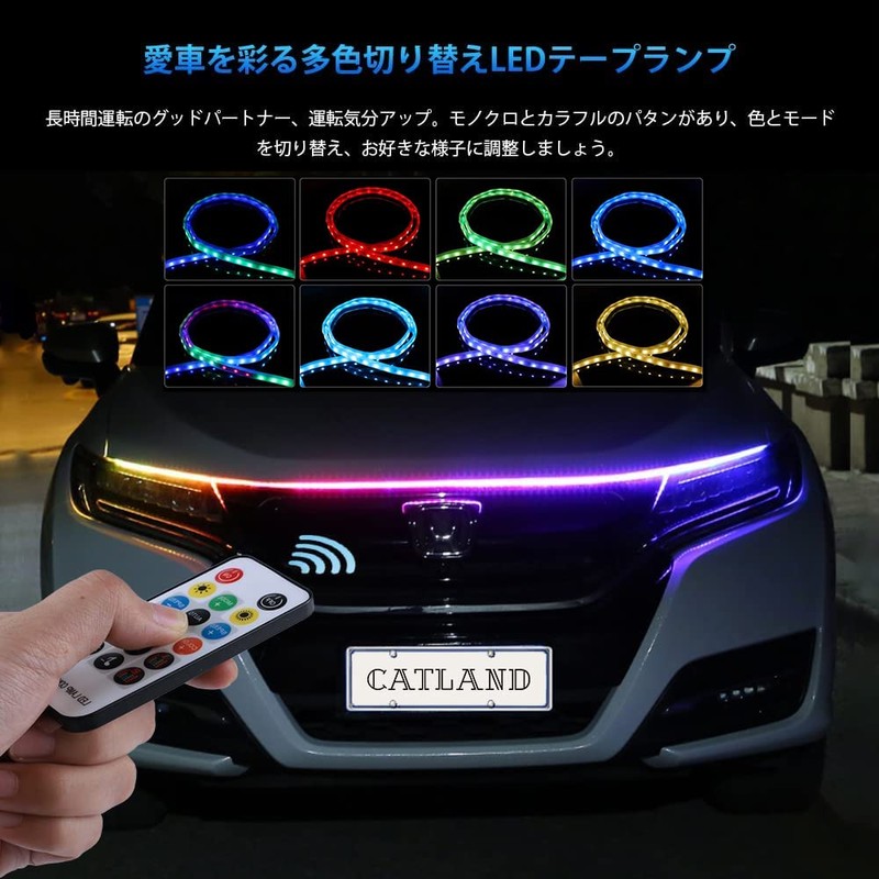 - (Remote Control) This product has been added to sound recognition. Mix and match with music to enjoy a different atmosphere. Remote control from your car allows you to stream rainbow or stream a single color. RGB so you can enjoy colorful delight (Soft and Waterproof) Flexible to fit well in car radians and can be worn without gaps. Silicone tape is waterproof, so you don't have to worry about water intrusion. Can be used in bad weather