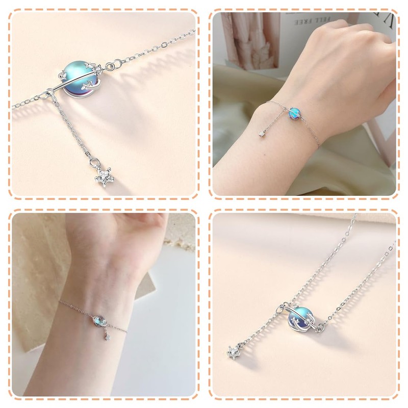 - High quality: women's 925 silver bracelet made of high-quality 925 sterling silver and elegant moonstones, the surface is carefully polished, hypoallergenic, does not colour your skin green, fade or discolour. The sparkling star is set with high-quality 3A+ cubic zirconia, which makes you even more charming.