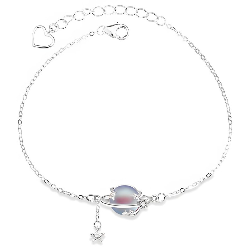 - Moonstone bracelet: moonstone bracelet radiates elegance and sophistication. The main elements are the moon and the stars. Moon and stars represent romantic love, hope, alertness and happiness. We hope that everyone who receives the moon and stars necklace will feel happy.