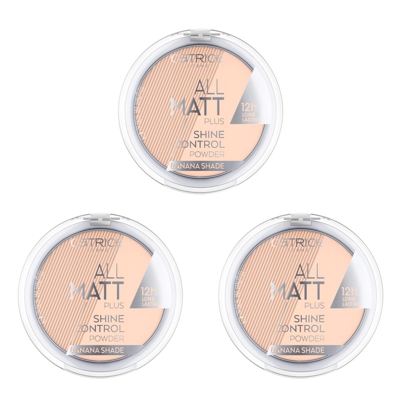 Catrice All Matt Plus Shine Control Powder, No. 002, Yellow, Long-Lasting, Mattifying, Translucent, for Dry Skin, Vegan, Oil-Free, Alcohol-Free, Paraben-Free, Pack of 3 (3 x 10 g)