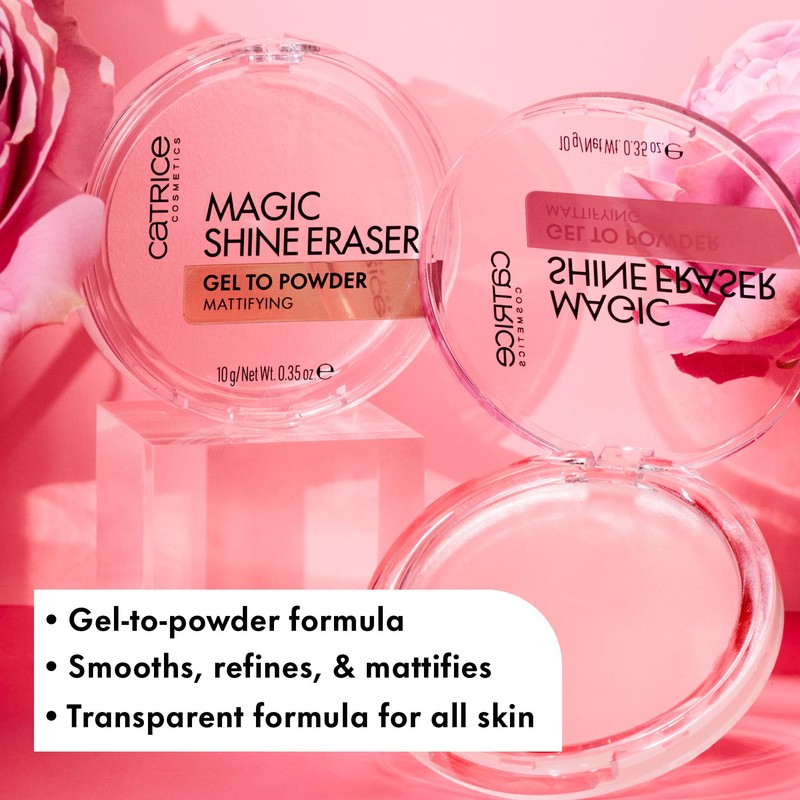 - SHINE-FREE IN SECONDS: Say goodbye to excess shine with the Catrice Magic Shine Eraser! This innovative gel transforms into a lightweight powder that smooths, refines, and mattifies in an instant.