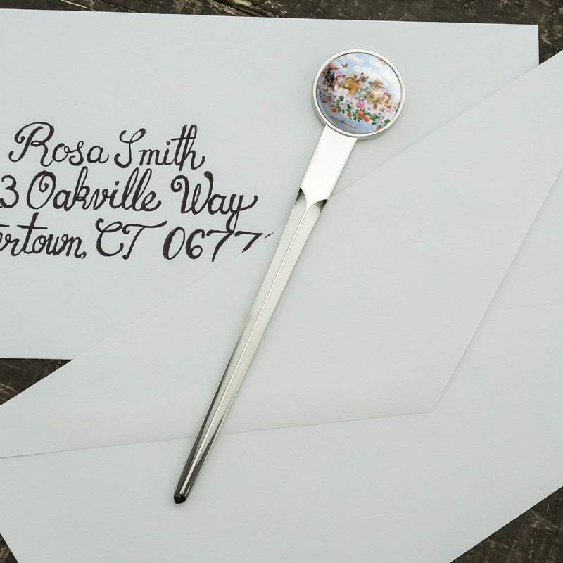 - The sturdy metal design makes opening mail a breeze, while the resin-topped image shown adds a personal touch.