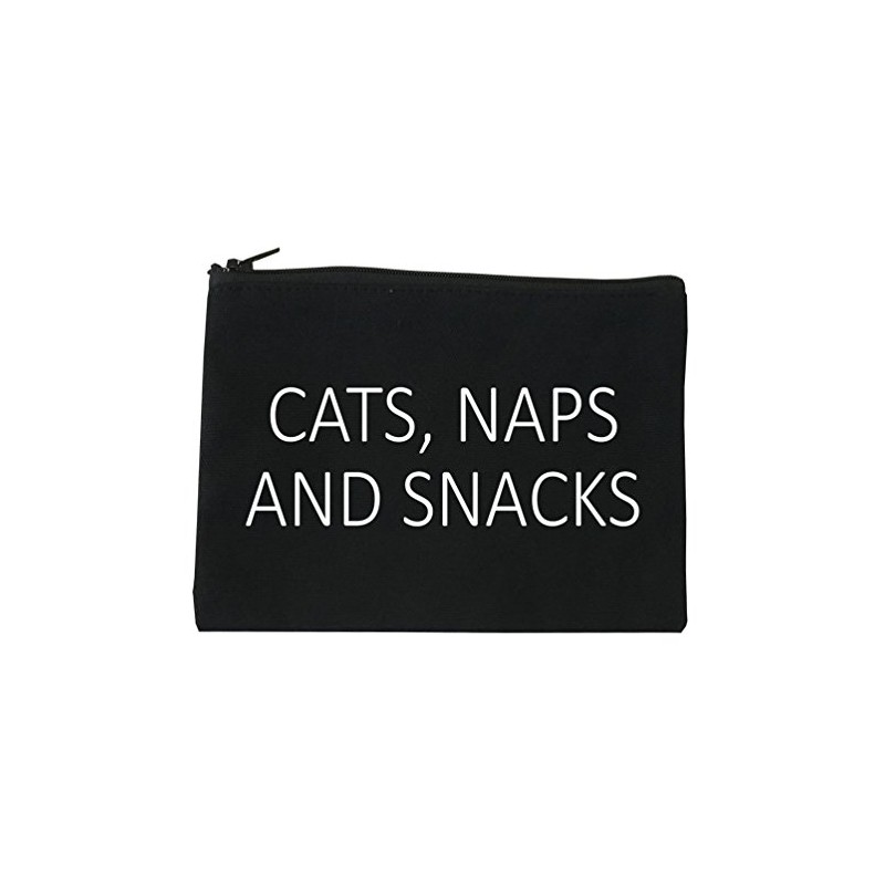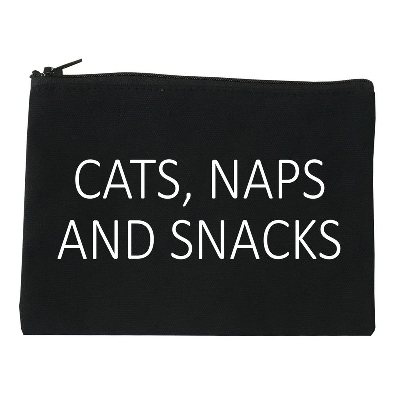 Cats Naps And Snacks Cat Lover Cosmetic Makeup Bag Black Medium