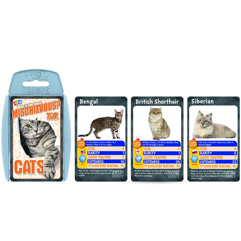 - Find out the size of a Bengal cat, cuteness of a British Shorthair and the rarity of a Siberian cat in this edition of Top Trumps - Cats