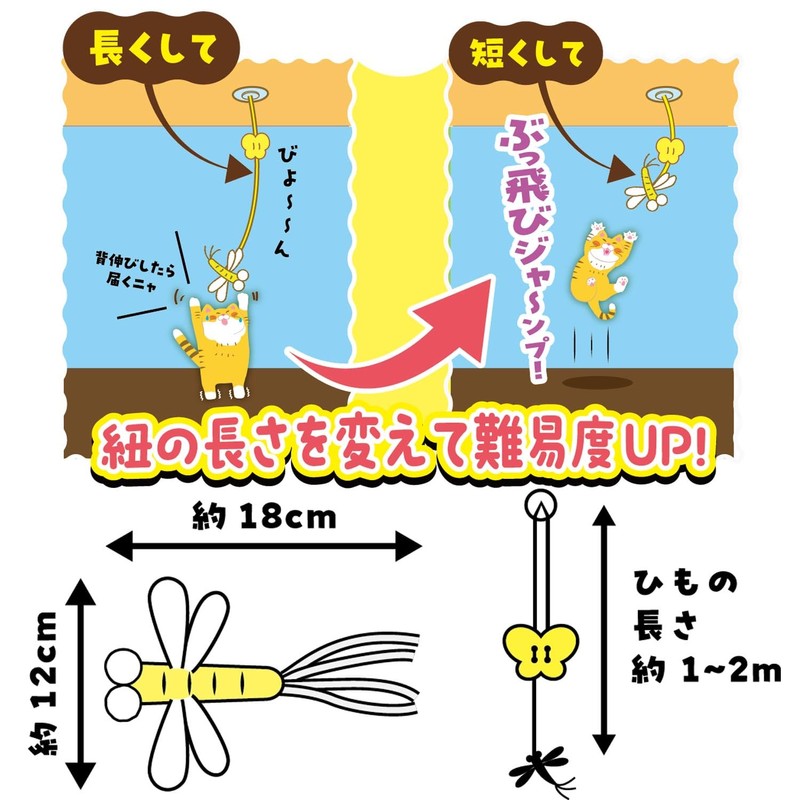 - Includes a dragonfly toy with film wings that shatter and shatter sounds. The toy can be used with the replacement motif of the "Jayeki Cat Favorite Sayashi Series" (sold separately)