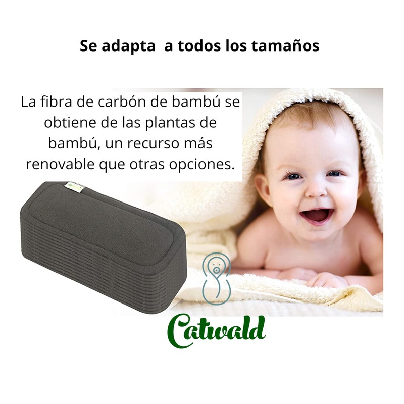 CATWALD - Insertos de carbon de bambú para pañales ecologicos por unidad, kit de 5 y 10. Insertos vegetales de microfibra 5 capas para pañal de tela. (10 Unidades)