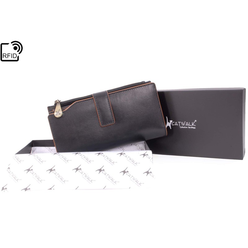 Catwalk Collection Handbags - Ladies Large Leather Purse - Women's 20 Credit Card Wallet with Phone & Coin Pocket - RFID - Stella - Black