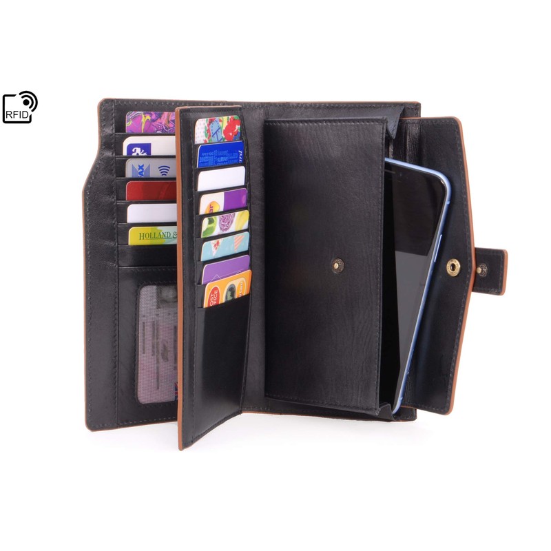 - A luxurious, leather purse beautifully presented in a gift box. With RFID Blocking technology, this wallet is perfect for keeping credit cards, coins and notes safe.