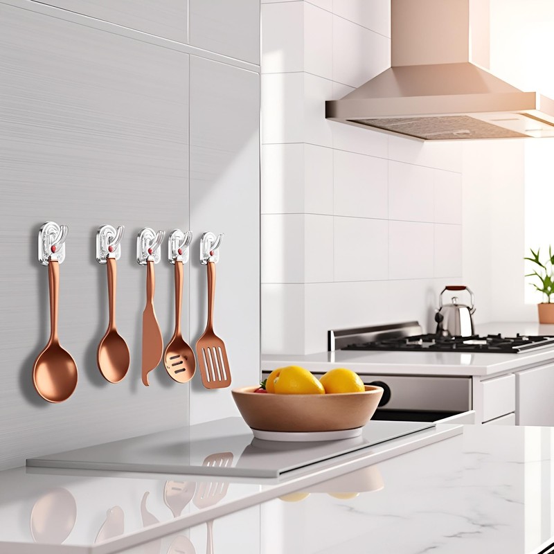 Transform your living spaces with versatile clear adhesive wall hooks. This practical set of 20 transparent acrylic hooks offers a sleek, nearly invisible storage solution that seamlessly blends with any decor. Perfect for bathrooms, kitchens, and throughout your home, these small but mighty hooks provide reliable hanging support without permanent installation. The clear plastic design maintains your room's aesthetics while adding functional storage space. These temporary wall hangers are ideal for organizing lightweight items, keeping essentials within reach, and maximizing vertical space in any room. The adhesive backing makes installation quick and straightforward, with no tools required. Whether you need to hang towels in the bathroom, utensils in the kitchen, or create additional storage in any room, these transparent hooks offer a practical and visually unobtrusive solution for your home organization needs.