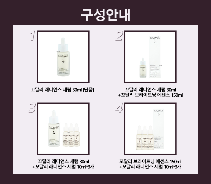 Caudalie Vinoperfect Radiance Serum 30ml, Serum 30mlx1 + Serum 10mlx3 / 꼬달리 비노퍼펙트 래디언스 세럼 30ml, 세럼30mlx1개 +세럼10mlx3개