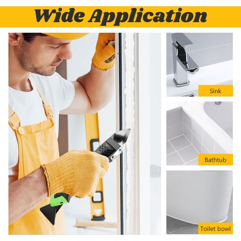 - Material: Made of stainless steel metal head and plastic materials, very durable, sturdy. With our caulking removal tool, it is easy to remove the old caulking and apply the new one. Won't cause scratches/any damage to the wall surfaces.