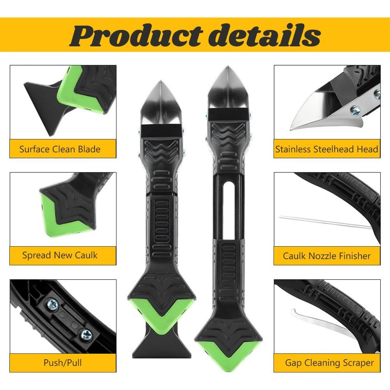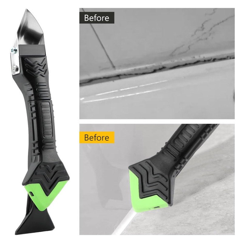 - Caulking Finishing Tool: Stainless steel scraper remove stubborn old glue. The silicone trowel to remove surface bumps and dents, It's an good tool for smoothing sealing lines, caulking lines. The caulking remover tools suitable for most caulking work, and help you finishin th edges, corners, joints.