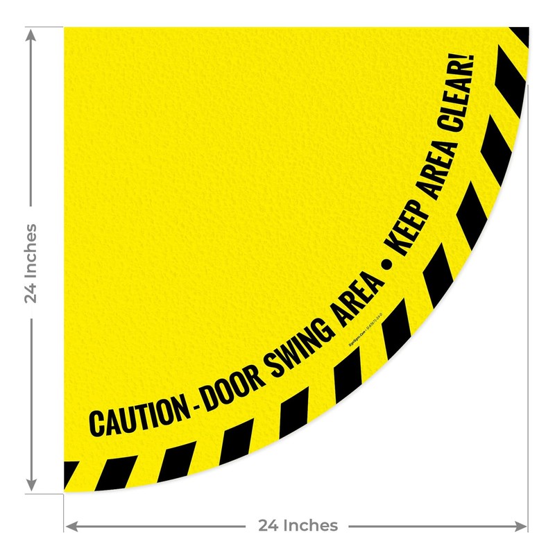Caution Door Swing Area Keep Area Clear, 24x48 Inches, Floor Decal Anti-Slip Adhesive Floor Sign Made in USA