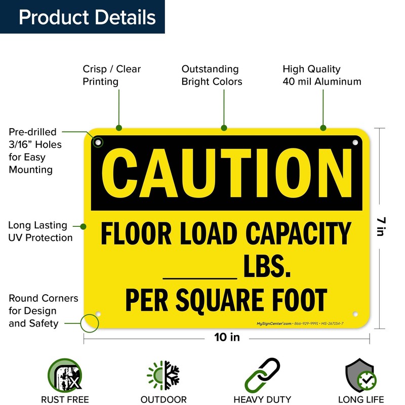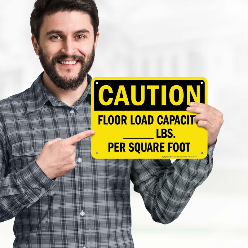 Caution Floor Load Capacity Lbs Per Square Foot OSHA Sign, 10x7 Inches, Rust Free .040 Aluminum, Fade Resistant, Made in USA by My Sign Center