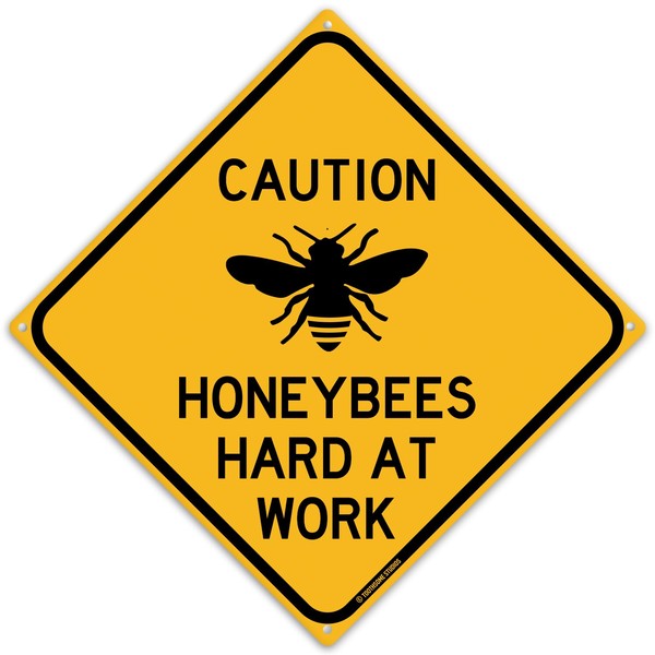 Caution Honeybees Hard At Work 12" x 12" Tin Road Sign Indoor Outdoor Beekeeping Apiary Theme Shed Garden Home Decor