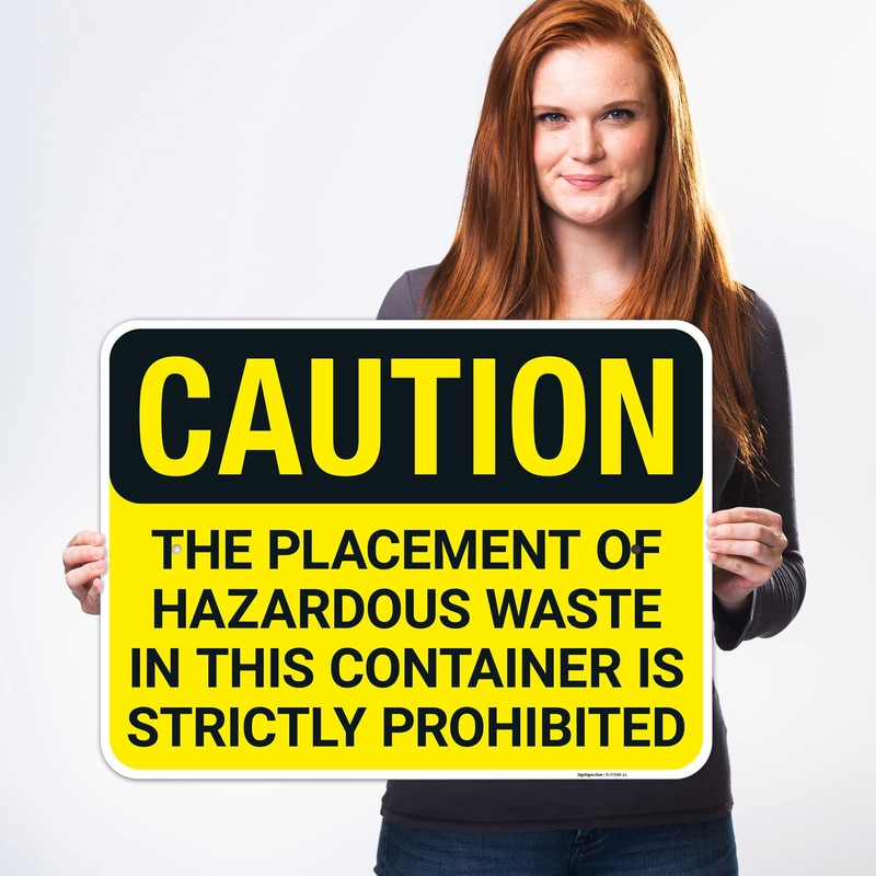 Caution The Placement of Hazardous Waste in This Container is Strictly Prohibited OSHA Sign, 18x24 Inches, 55 mil Thick HDPS (high Density polystyrene), Made in USA