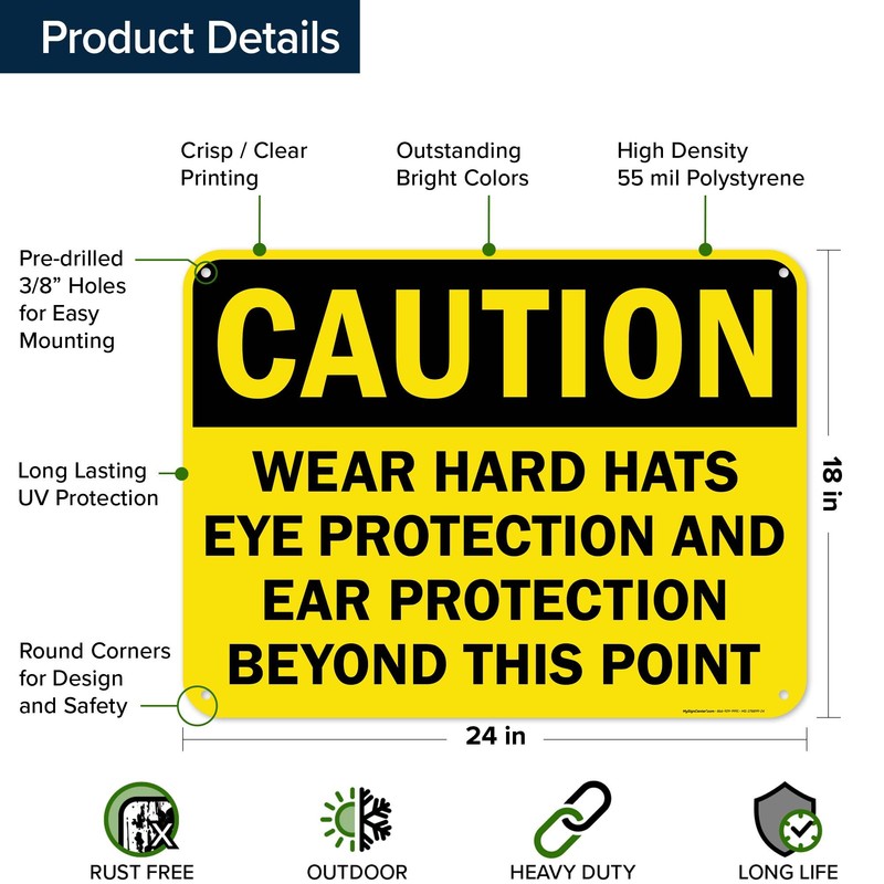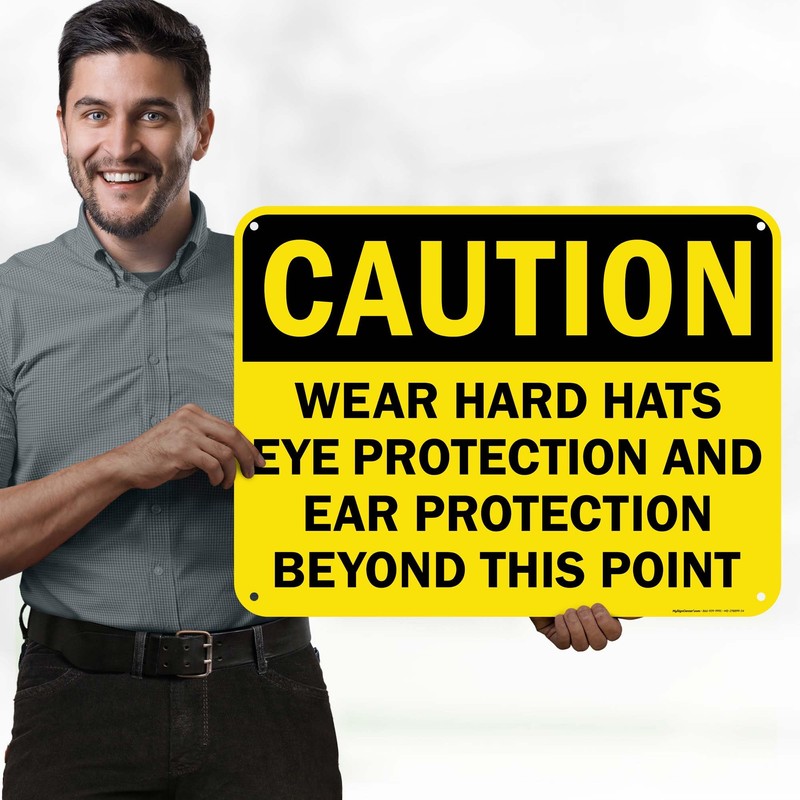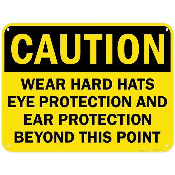 Caution Wear Hard Hats Eye Protection And Ear Protection Beyond This Point OSHA Sign, 18x24 Inches, 55 mil thick HDPS (high density polystyrene), Made in USA by My Sign Center
