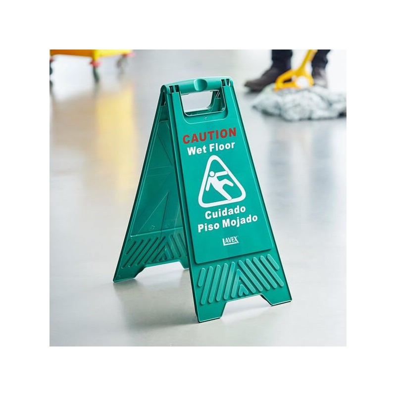 - BILINGUAL DESIGN: Features "CAUTION Wet Floor" text in both English and Spanish with clear graphics for maximum visibility and understanding