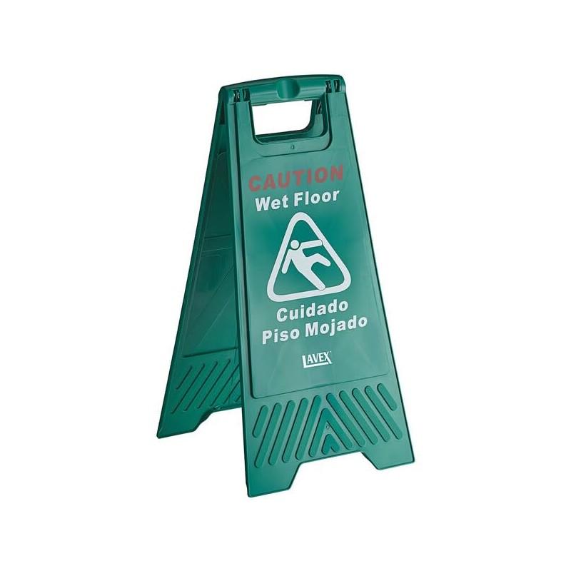 Caution Wet Floor Sign, 25 Inches, A-Frame, Green, Bilingual