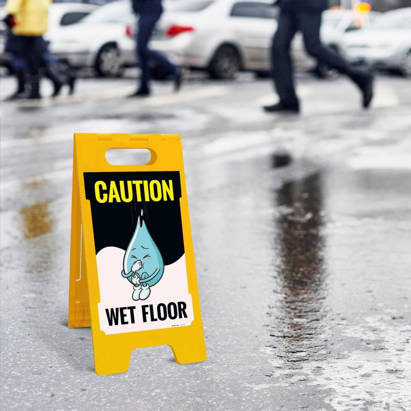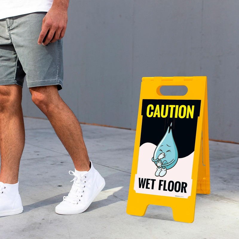 Caution Wet Floor Water Sidewalk Sign Kit, 10x16 Inches, with A Frame Stand, Made in USA
