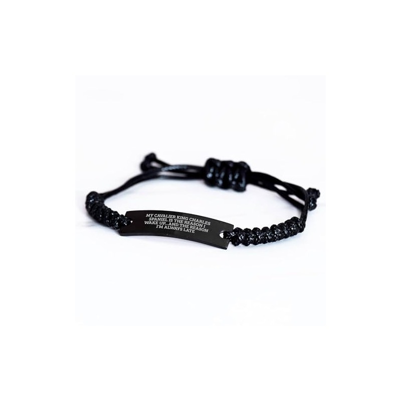 - Experience the joy of owning a Cavalier King Charles Spaniel Dog with this unique Rope Bracelet, perfect for any wrist size. Savor every moment with the comfort of knowing your new favorite accessory is being enjoyed by a Cavalier King Charles Spaniel Dog enthusiast like you. 'My Cavalier King Charles Spaniel Is The Reason I Wake Up...and The Reason I'm Always Late' says it all - this rope bracelet is a must-have for any Cavalier King Charles Spaniel Dog parent.