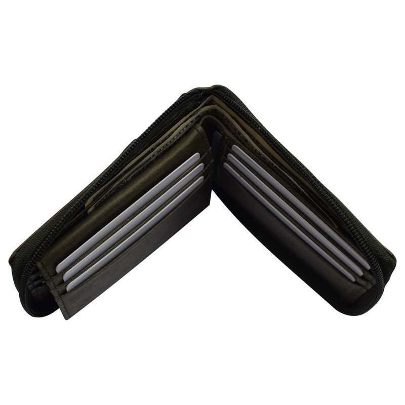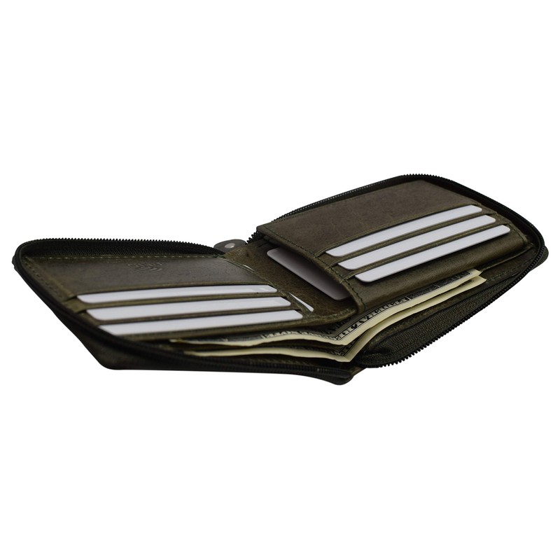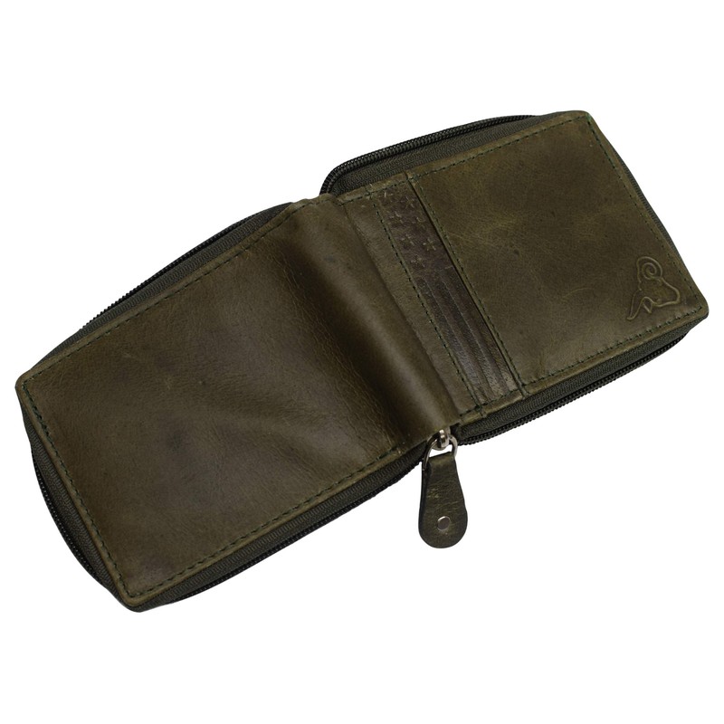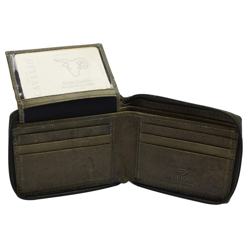 Cavelio Genuine Leather Slim Bifold Zipper Men Wallets RFID Blocking USA Series (1256HU GREEN)