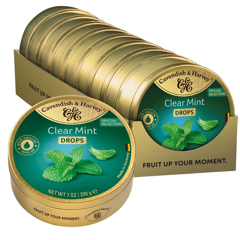 Cavendish & Harvey Travel Tin Clear Mint Drops 200 g (Pack of 9)