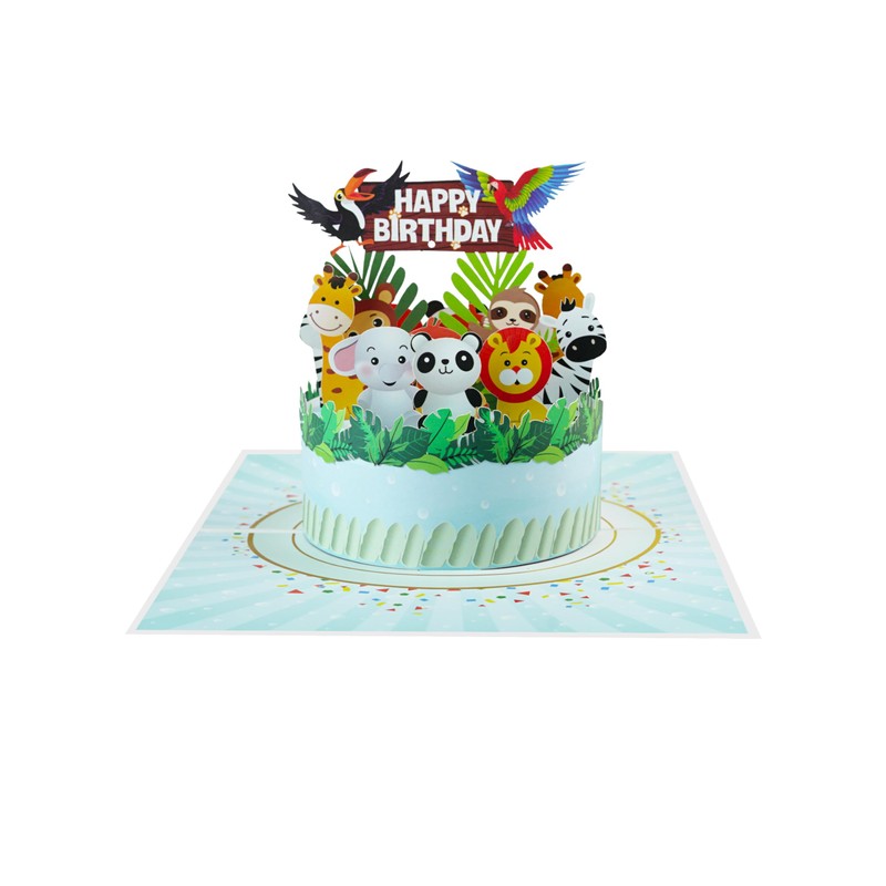 Box contents:- 1 x 3D pop-up birthday card with jungle animals.