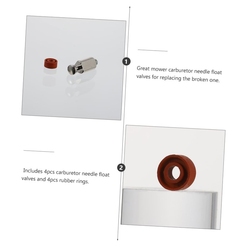 - This set consists of 4pcs carburetor needle valves and 4pcs rubber ring lawn mower lawn mowers accessories lawn mower accessories lawnmowers an fittings pinblock kits mower lawnmower Carburetor Float Valve Needle Kit needle and carburetor Carburetor Needle Float Valves Lawn Mower Pin Valves Mower Float.