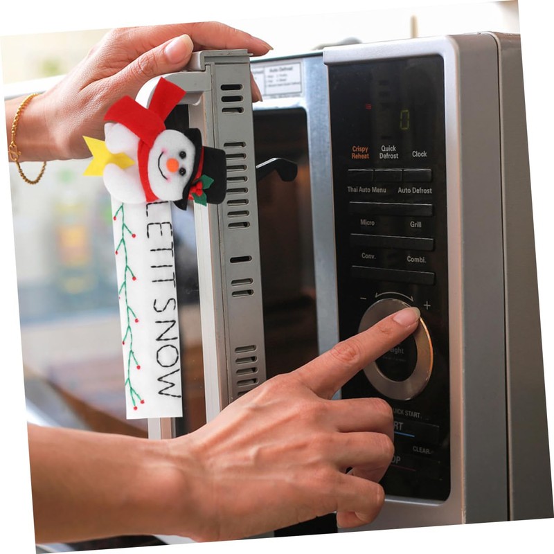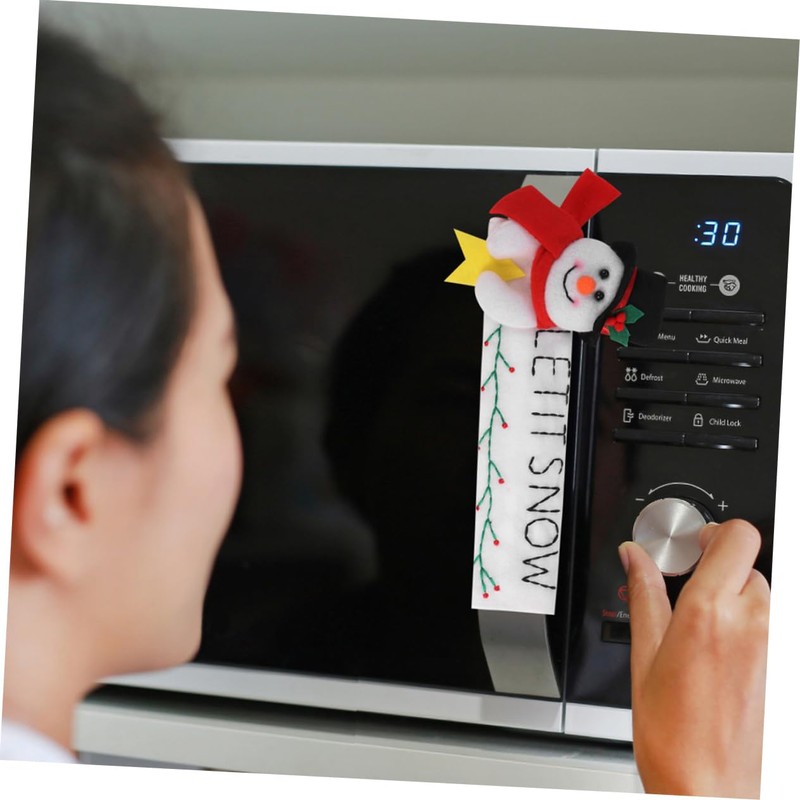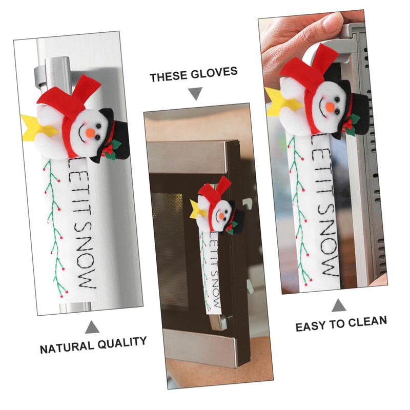 Oven Handle Cover These door handle covers are designed to keep kitchen appliances' handle off from stain, dirty hands, water and fingerprints, and do elegant decoration too.home accents decor With Christmas theme snowman cartoon, it will be a more beautiful home decoration.Xmas frige Handle protector It can create a thick Christmas atmosphere