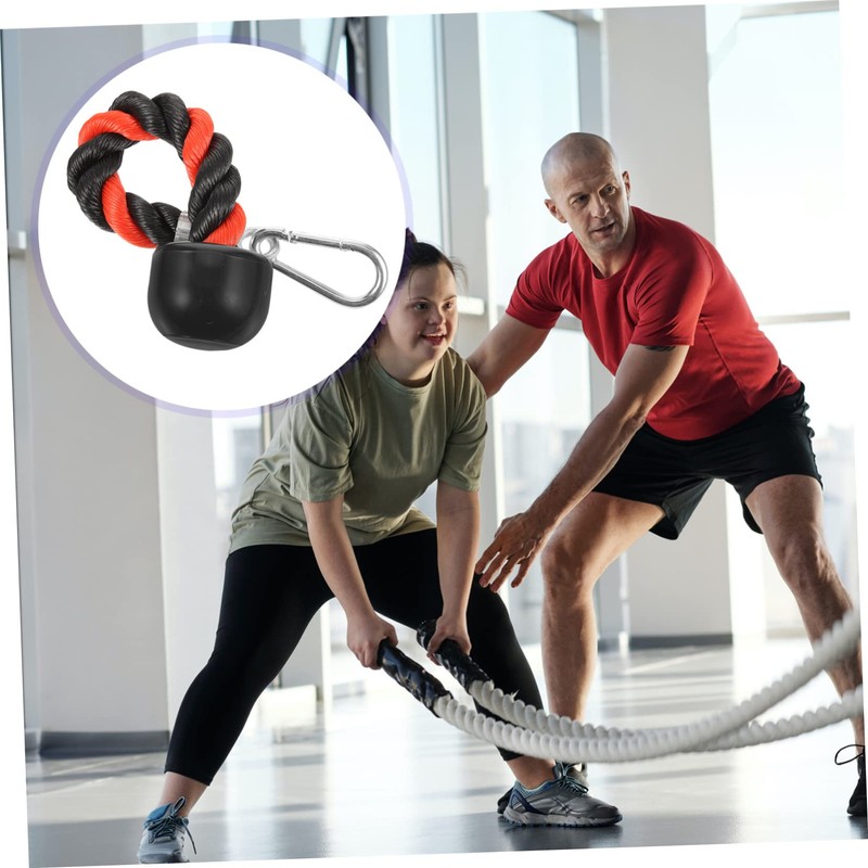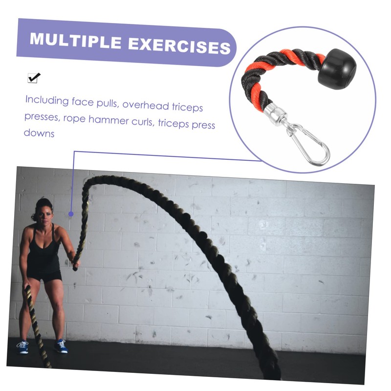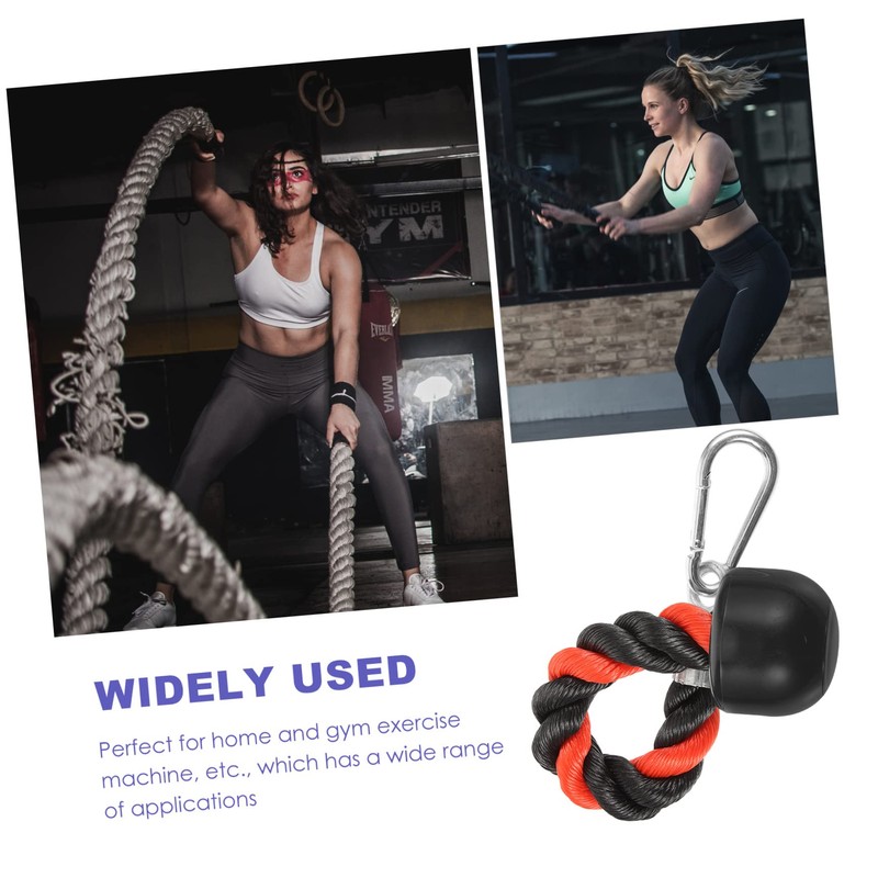 fitness rope overhead tricep extensions, push downs, hammer curls and bodybuilding.fitness supplies This product is a dual grip tricep rope for strength training.biceps strength train rope It can help you to develop triceps, biceps, back, shoulders and abs.hands pull rope It is a perfect necessity for sports and fitness lovers.cable attachments Made of nylon and TPR material for use