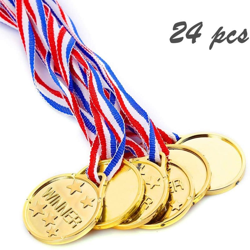 Caydo 24 Pieces Children's Gold Plastic Winner Award Medals, 1.38 Inch