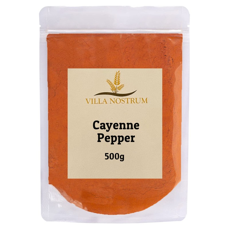 Cayenne Pepper 500g by Villa Nostrum - Ground Cayenne Pepper, Warm, Smoky Aroma, Spicy Flavor, Ideal for Rubs, Marinades, Sauces, Meats