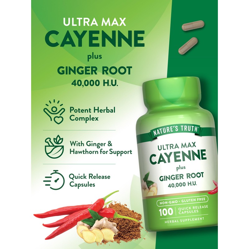 Nature's Truth Cayenne Pepper Capsules | 40,000 HU | 100 Count | with Ginger Root | Non-GMO & Gluten Free Supplement
