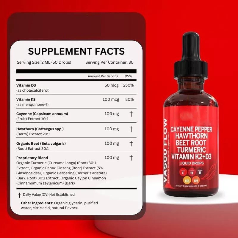 Cayenne Pepper Hawthorn Beet Root Turmeric Vitamin K2+D3 Liquid Drops