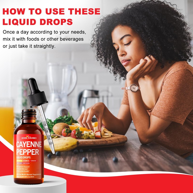 • IMMUNE BOOSTING CAYENNE PEPPER LIQUID DROPS: Packed with immune-boosting ingredients like vitamin D3, turmeric, and cayenne pepper, these cayenne pepper liquid drops are the perfect addition to your daily routine. The combination of hawthorn berry and beetroot further supports your body’s natural defenses, while cayenne pepper extract provides a powerful, plant-based boost. This easy-to-use formula helps keep your immune system strong and your overall wellness in check.