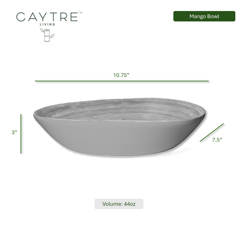 Caytre Living Mango Bowl Decorative Painted Wooden 10x7.5x2.8 Inch Bamboo Bowl for Serving Salads, Side Dishes and More- Pewter
