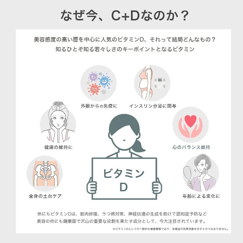 - [A step ahead, C + D + K] Not just liposomal vitamin C! With D3 and K2, it's a luxurious combination that will fully satisfy your ideal! (Vitamin C: 1,000mg Vitamin D3: 2,000IU Vitamin K: 50μg per 3 tablets) With K2, you can eliminate worries about excess D!