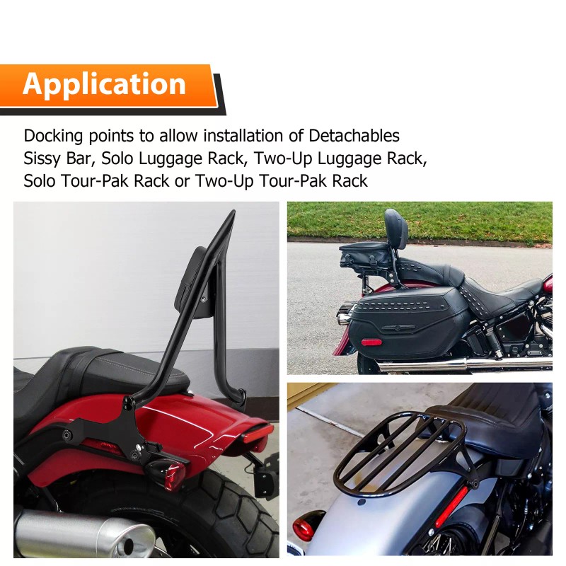 CB Black Sissy Bar Docking Hardware Kit for Harley 2018-2024 Softail Slim Fat Boy