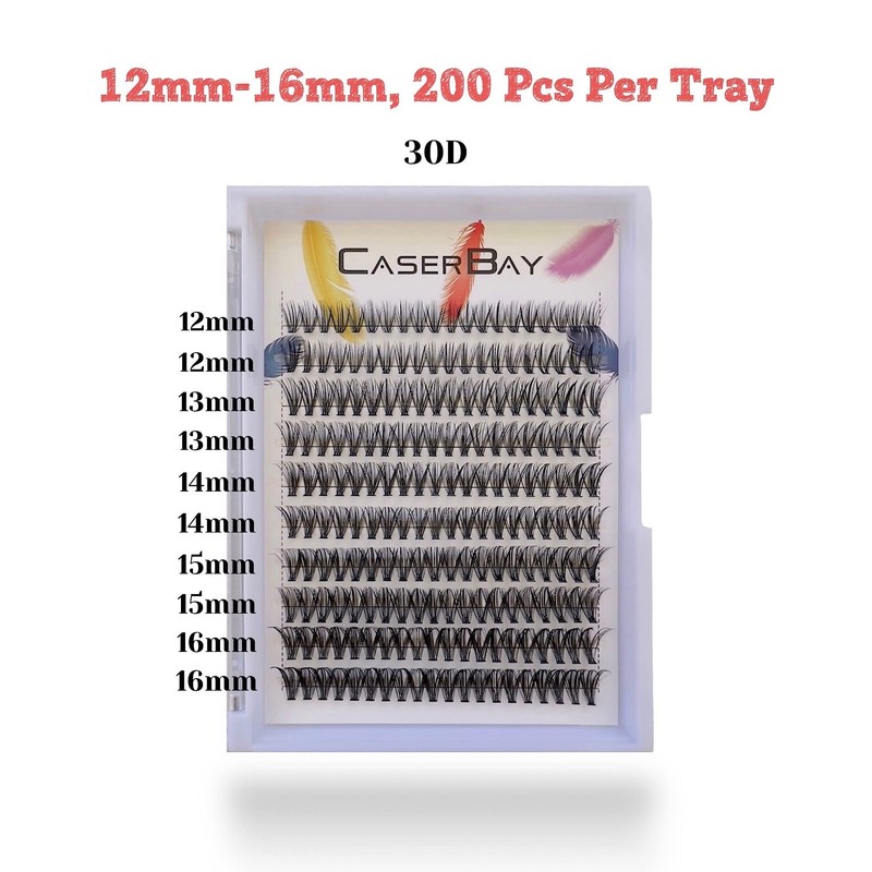 CB Cluster Lashes, 200 Pcs Large Tray, Individual Eyelash, 12mm-16mm, 20D 30D 40D, C, D Curl, DIY Volume Eyelash Extensions At Home Or Professional Makeup, D Curl, 12-16mm Mix Tray, 30D