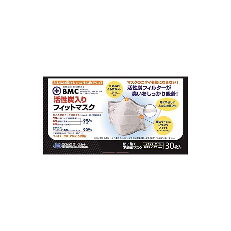 CB Fit Mask with Activated Carbon, Black, 30 Pieces x 4 Pieces