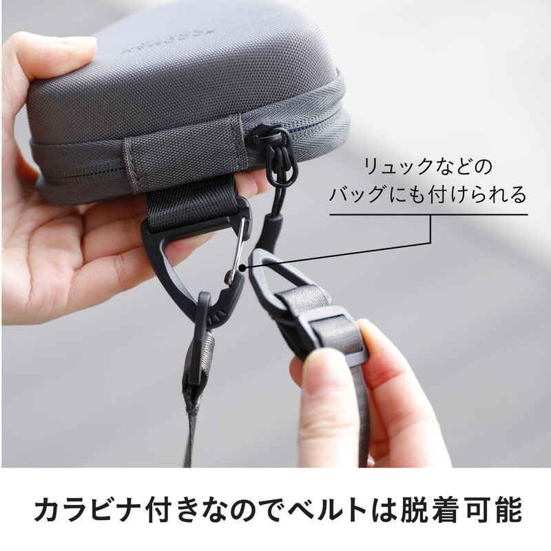 - The belt that can be hung from the shoulder is attached with a carabiner, so it can be removed for use. You can attach it to a backpack or belt ring to the "Onigiri Time" anytime, anywhere