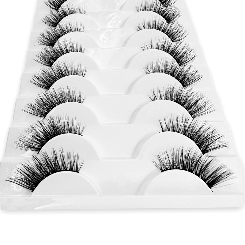 CB Value Pack 20 Pairs/ 2 Trays 3D Fluffy Half Lash Strip, 3/4 Length Cat-Eye False Eyelashes, Black Band Natural Look Wispy Soft Strip Lashes, Multiple Styles, 01 & 10
