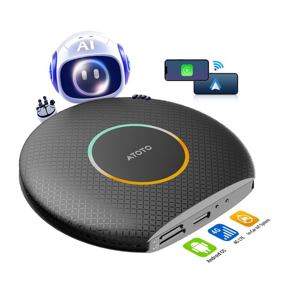CB6 CarPlay AI Box, 2025 Wireless CarPlay Adapter/Android Auto, Plug & Play Smart Box with Advanced AI, GPS, Compatible Massive APP, Android 13, 2 BT, 4G LTE, 4G+64G, for OEM Wired CarPlay